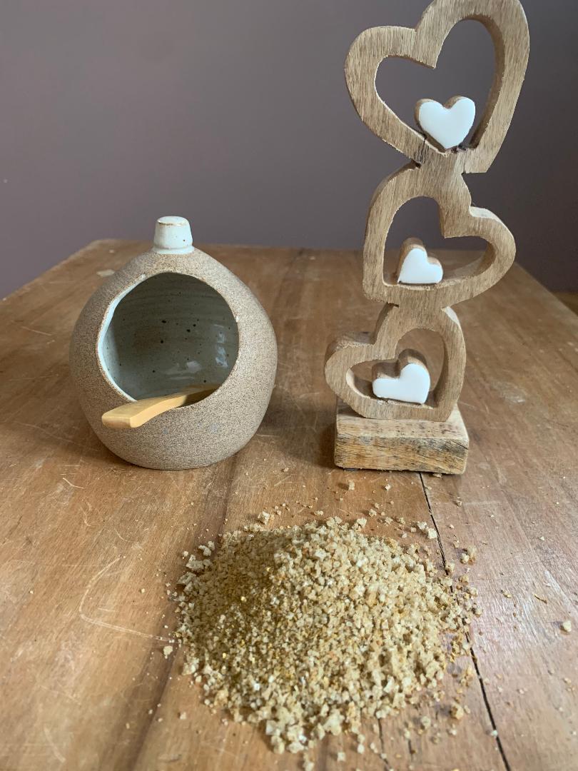 Boule à sel beige + cuillière en bois